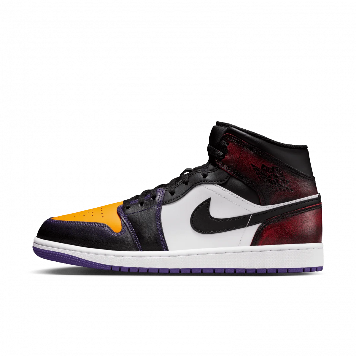 Basketball greatness is in the Air Jordan 1's DNA. This mid-top edition is a tribute to MJ's first championship, featuring a bold clashing of colors for both Chicago and Los Angeles, along with brushed-away leather.