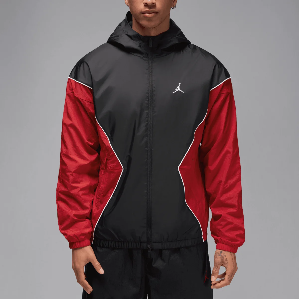 Lightweight and slick, the Draft Jacket is Jordan's take on the windbreaker. Smooth, water-repellent nylon fabric and an airy mesh lining help keep you dry and comfortable. Piping details add heritage style inspired by MJ's early warm-up looks.