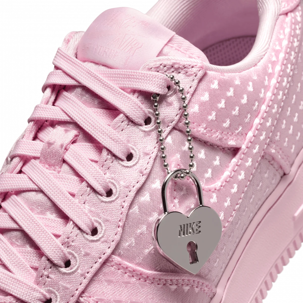 Love is in the air. Don't believe us? Check inside the tongue. Or let the all-over textured hearts, monochromatic colors and special locket charm convince you.